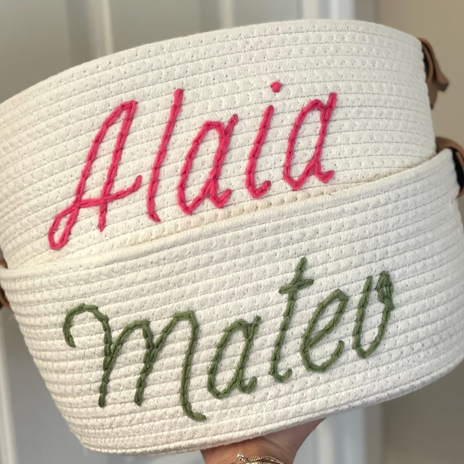 Hand Embroidered Custom Name Baskets