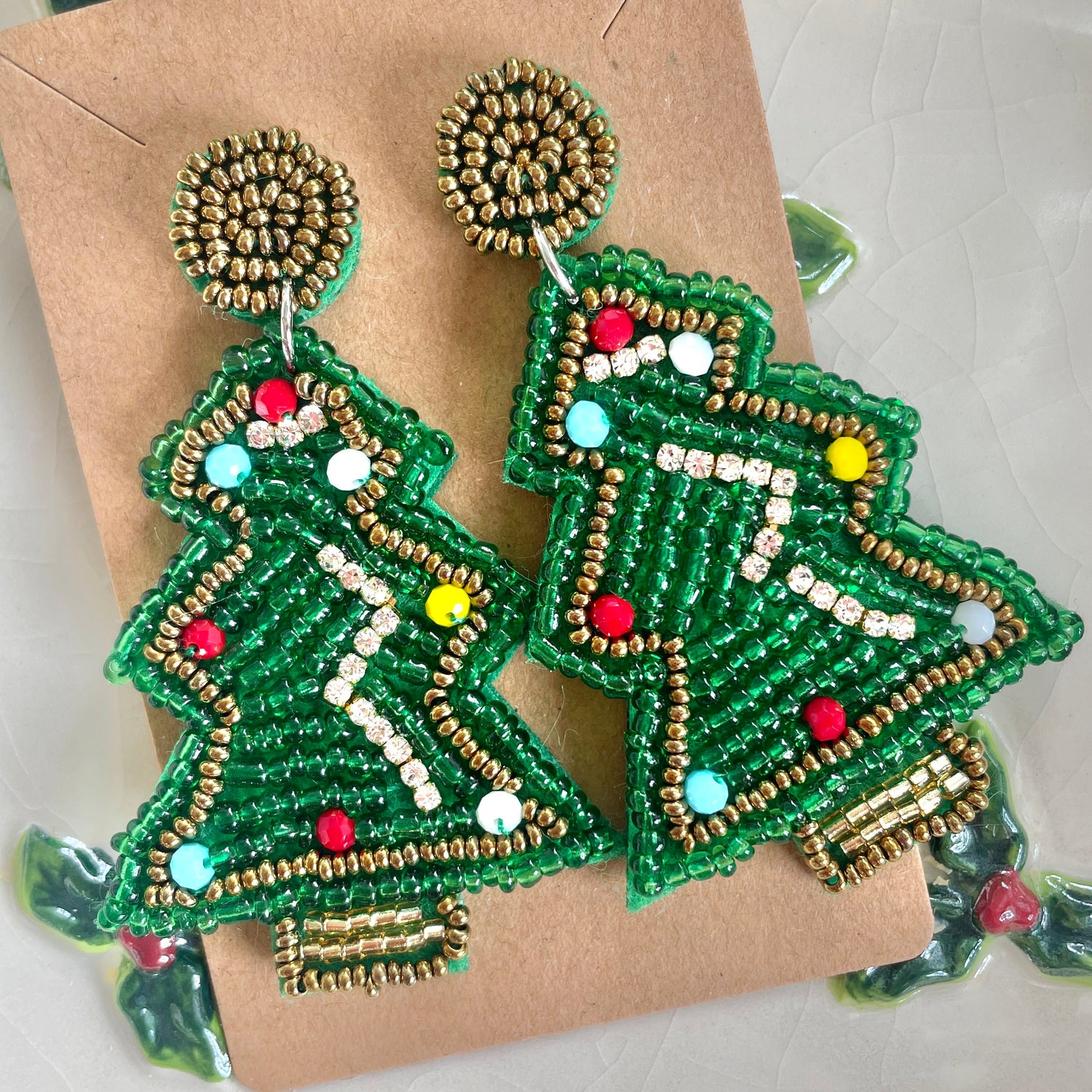 Green Christmas Tree Bead Earrings