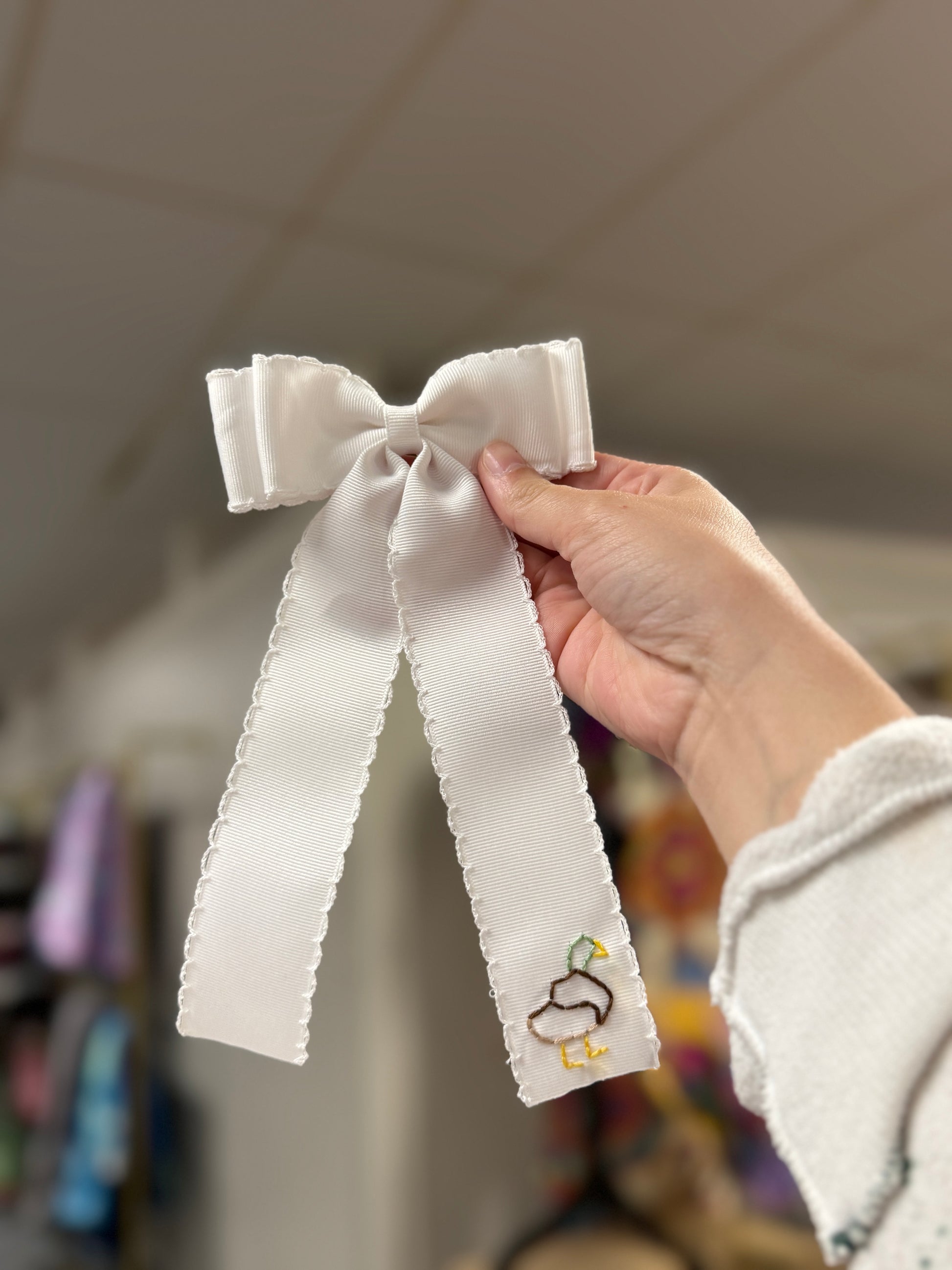 Long Tail Double Ribbon White Mallard Bow